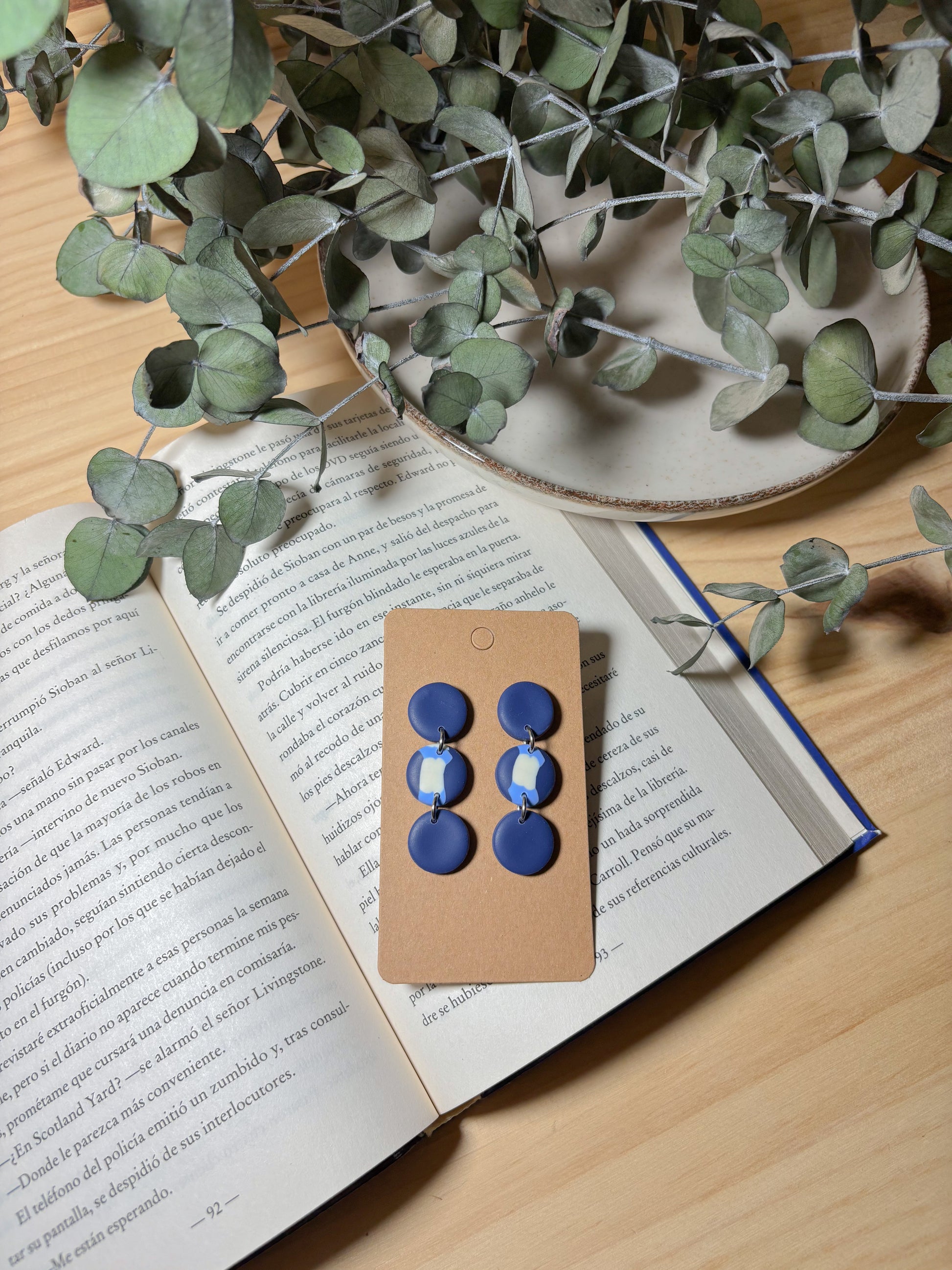 Pendientes estampados azules y blanco (modelo 5)